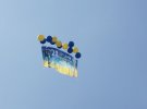 Військові Об'єднаних сил разом з місцевими жителями та волонтерами запустили синьо-жовті прапори у бік окупованих районів Донеччини та Луганщини.