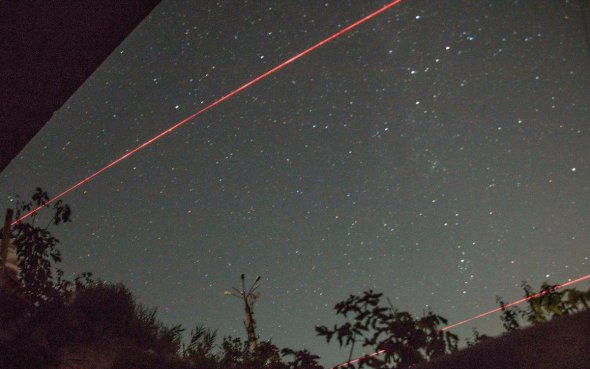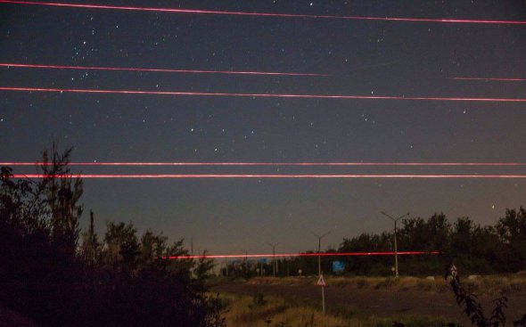 На світлинах видно червоні сліди від трасуючих снарядів.