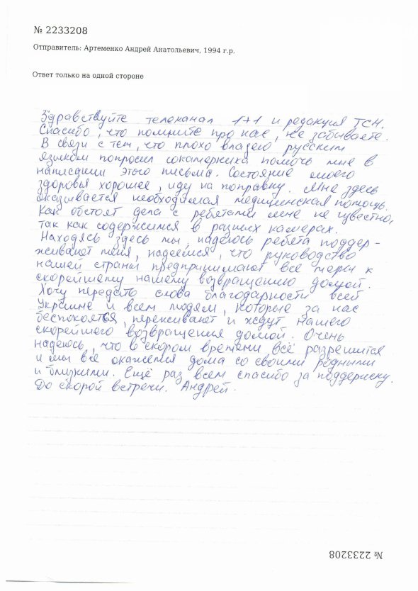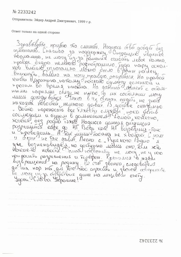 Українські моряки Андрій Ейдер та Андрій Артеменко, яких незаконно утримують у російському полоні, відповіли на листи журналістів.