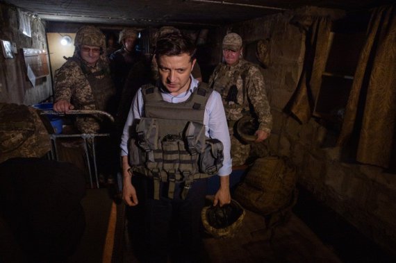 "У Станиці Луганській президент побував на передовій, зокрема в посту спостереження та бліндажах. Найближча позиція супротивника – за 400 метрів", - йдеться у повідомленні.