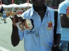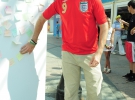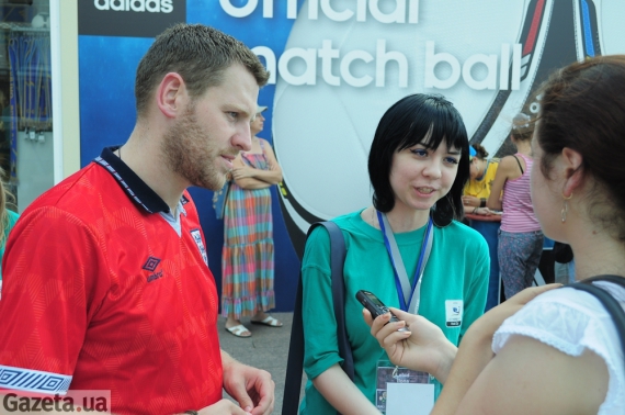"Так, пиво тут утричі дешевше, ніж в Іспанії. Обід теж відносно недорогий, але день життя у Києві мені обходиться у 500 гривень. Це дорожче, ніж у Вроцлаві чи Варшаві. Там витрачав 170 злотих (402 грн)", - каже іспанець Ін'які Суарес. Стоїть на столичному Хрещатику в світлих шортах та білій футболці із англійським написом "Маямі біч". На ногах потерті кросівки. До нього підходять дівчата із зеленими сумками з написом англійською "Волонтер".
