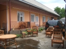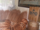 Вона продає товар у дворі свого будинку під накриттям із шиферу. На полицях виставлені плетені кошики, хлібниці, цукерниці, табуретки, крісла і столи.