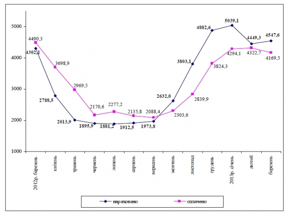 Упродовж січня-березня 2013 року населенням країни сплачено за житлово-комунальні послуги 12,8 млрд грн (91,1% нарахованих за цей період сум). Серед регіонів найвищий рівень оплати за житлово-комунальні послуги спостерігався у Закарпатській та Львівській областях (101,9 та 99,1% відповідно), найнижчий – у Харківській, Дніпропетровській та Херсонській областях (83,9–87,4%).