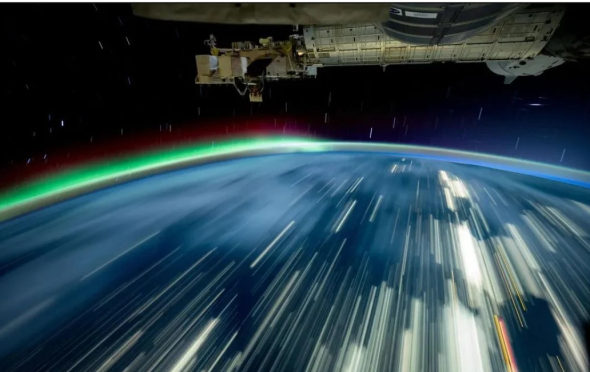 "На фото видно вогні міст у Північній Америці, що злилися в суцільні смуги через велику швидкість польоту та обертання Землі", - сказано в повідомленні.