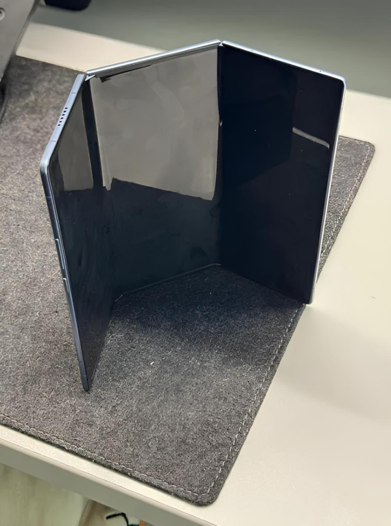 Перші фото нового гаджета опублікував авторитетний інсайдер Ice Universe. Подібно до Huawei Mate XT, пристрій має потрійний механізм складання. Однак Tecno використала незвичну конструкцію, за якої обидва боки дисплея згинаються всередину, утворюючи форму, схожу на літеру G. Про це повідомляє інсайдер Ice Universe.