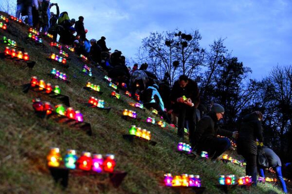 За 20 метрів від меморіалу пам'яті жертв Голодомору у столичному Парку Слави 72-річна Лідія Пірнич запалює лампадку. Підійти ближче не дають працівники державної охорони. Чекають на президента.
