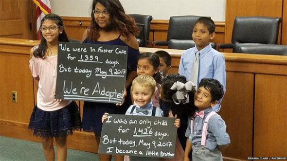 Американське подружжя Джош і Джессака Кларк зі штату Джорджія всиновило сімох братів і сестер, які жили у притулку упродовж останніх чотирьох років.
