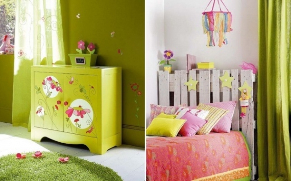 "Підійде сполучення близьких по тону неяскравих відтінків. Добре, коли підлога, стіни і стеля зроблені у світлих тонах – білих, блакитних, молочних. Меблі у дитячу купуйте білі – вони однаково потішать і хлопчика і дівчинку. Не обирайте громіздких високих шаф – краще комод, стіл для уроків і малювання, ліжечко з висувними шафками. Хлопчикам купуйте меблі зелені і блакитні, дівчаткам – рожеві і салатові".