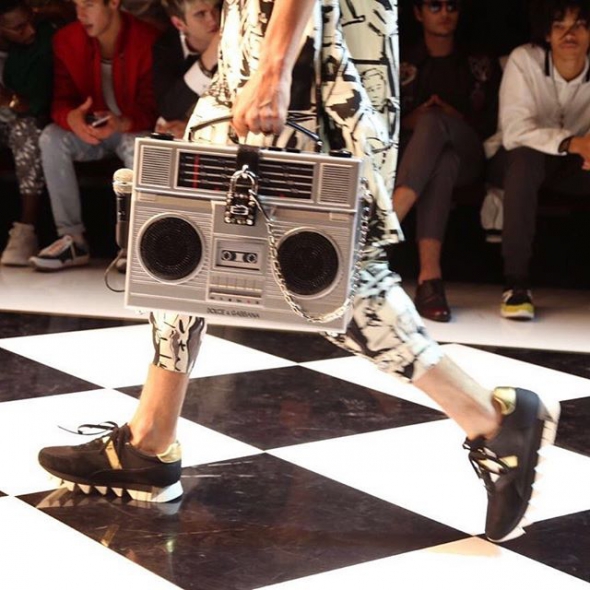 Дім моди Dolce&Gabbana представив нову сумку-бумбокс Dolce Box. Це модель аксесуару для любителів музики. В сумку вбудовані колонки та роз'єм для підключення плееру.