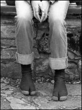 — Що за дивина? — питаю пані в бавовняних чобітках із каучуковою підошвою. У них, як у рукавичках, великий палець відокремлено від інших!