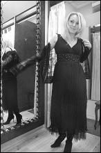 — Трикотажні сукні трохи екстремальні, — каже 20-річна Юлія, розглядаючи себе у дзеркало. — Треба постійно слідкувати за поставою. Але якщо накинути зверху легку кофтину або шаль — буде те, що треба.