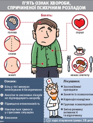 — Болі Світлани викликані психосоматичним розладом, — каже Леонід Юнда, керівник відділення психотерапії та медичної психології межових станів. — Це коли від виснаженої психіки організм дає збій. Від нав'язливого страху найчастіше потерпають вразливі люди. Для них достатньо тривалий час не відпочивати. Половина пацієнтів в українських лікарнях мають саме психологічні проблеми.