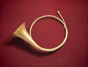 Цей латунний ріжок зберігається у Львівському музеї пошти. Виготовлений у?XIX ст., коли поштарі вже майже перестали його застосовувати. Але скручений ріжок став міжнародним поштовим символом. Першими ж його почали використовувати м'ясники зі Швабії, що на південному заході Німеччини. Роз'їжджаючи країною для закупівель худоби, вони водночас до кінця?XVI ст. перевозили листи. Це була так звана пошта м'ясників. У ріжок дули, даючи знати, що можуть купити корову чи телицю, а заразом вручити пошту. Потім у м'ясників забрали привілей розвозити листи – оформилася окрема поштова служба. І привласнила собі звичай дути в ріжок.