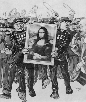 Викликали поліцію. Жандарми ретельно обшукали 20 га території музею, допитали працівників, їхніх родичів і знайомих. Провели обшуки в поїздах, закрили вокзали й порти. Хапали всіх підозрілих паризьких художників та іноземців. Усе марно. Французька преса підкидала слідчим неймовірні версії. Писали, приміром, що "Джоконда" тепер у таємній колекції маніяка, який милується нею на самоті. З'явилися історії й про так званого "Закоханого". Нібито за рік до зникнення полотна до Лувру почали надходити любовні листи, адресовані "мадам Моні Лізі". Сторожі музею підтвердили: білявий парубок із блакитними очима щодня приходив до картини, дивився на неї та плакав. Усе це, як виявилося, були вигадки.