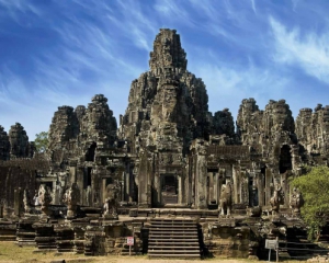 Храмовий комплекс Ангкор-Ват знаходиться неподалік камбоджійського міста Сієм. Довгий період був прихований від сторонніх очей заростями джунглів. Його звело місцеве населення часів Кхмерської імперії за наказом правителя Сурьявармана. За його задумом, храмовий комплекс мав повністю відтворювати світ Богів, куди останній хотів попасти після смерті. Серед двору знаходиться храм, навколо якого стоять п'ять веж, виконаних у формі лотосу. Найвища - в центрі, її висота сягає 65 м. Чотири інші – дещо нижчі. Таке розташування уособлює собою модель Всесвіту зі Священною горою Міру.