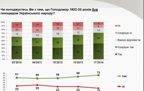 При цьому противників визнання Голодомору геноцидом протягом 2010-2013 років поменшало з 25 до 15%.