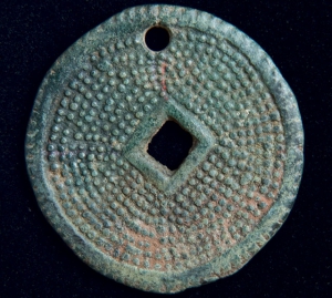 Археологам відомо чимало китайських монет того і більш раннього часу, схожих з цією річчю за формою, але не за малюнком. Як правило, на одній стороні монети, що символізує енергію ян, яку зображують чотири ієрогліфи. Вони вказують на те, до якої династії належала монета. А на стороні інь містилися два знаки. Залежно від того, при якому з імператорів була викарбувана монета, на ній міг бути додатково вказано девіз правителя.