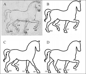 Вчені насмикали тисячу прикладів з онлайн-колекцій, книг з мистецтва та угорських музеїв, а також з марок і монет. І розрахували, що шанси на випадкову помилку в другу епоху становили 73,3%, але в дійсності цей показник виявився на рівні 83,5%. Як не дивно, серед некоректних робіт був помічений навіть ескіз Леонардо да Вінчі: на землі стоять права задня і ліва передня ноги коня, тоді як інші підняті. Насправді це дуже нестійке положення. Завжди чотириногі торкаються поверхні трьома кінцівками.