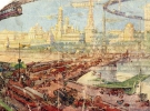 Ясний вечір. Луб'янська площа. Синяву неба креслять чіткі лінії аеропланів, дирижаблів і вагонів повітряної дороги. З-під площі вилітають довгі вагони Московського Метрополітену, про який при нас в 1914-му році тільки говорили. На мості над Метрополітеном ми бачимо стрункий загін доблесного російського війська, що зберегло свою форму ще з наших часів. У синьому повітрі ми помічаємо товарний дирижабль Ейнем, що літає в Тулу із запасом шоколаду для роздрібних магазинів.