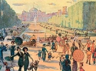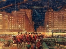 Театральна площа. Темп життя посилився в сто разів. Усюди блискавичний рух колісних, крилатих, пропелерних й інших апаратів. Торговий дім Мюр і Мерліз, що існував ще в 1846 році, нині розрісся до нечуваних розмірів, причому головні відділи його сполучені з повітряними залізницями. З-під бруківки вилітають численні мотори. Десь вдалині пожежа. Ми бачимо автомобільну пожежну команду, яка через мить припинить лихо. На пожежу ж поспішають біплани, моноплани і безліч повітряних прольоток.