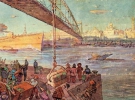 Жваві, шумні береги великої судноплавної Москви-річки. Прозорими глибокими хвилями широкого торговельного порту мчать величезні транспортні і торговельні крейсери й багатоповерхові пасажирські пароплави. Увесь флот світу – винятково торговельний. Військовий скасований після мирного договору в Гаазі. У шумній гавані видно різнохарактерні костюми усіх народів земної кулі, бо Москва-річка зробилася світовим торговельним портом.