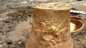 Дослідники датували золоті вироби 3 століттям до н.е. Серед цінних артефактів - перстень, золота чаша і ваза зі зображеннями тварин.