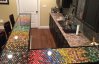 Для цього їм знадобилося два великих шматка фанери, фарби і епоксидні смоли. Кришки склали в підготовлене поглиблення у послідовності за кольорами, яка нагадувала веселку. Потім барну стійку залили смолою в кілька шарів.