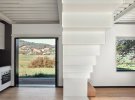 Перший поверх - це відкритий простір, в якому розміщуються кухня і вітальня. А посередині розташовується білі сходи зі сталі.