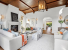 Оригінальний класичний кам'яний камін посередині вітальні, вишукані різьблені меблі ручної роботи. вітражі на вікнах та дверях - основні атрибути колоніального іспанського впливу в Мексиці. Достатня кількість вишуканих оригінальних свічників, скульптур малих форм розміщують на пріоритетних місцях інтер'єру. Сучасна вітальня потребує більш обмежену кількість відтінків. В оздобленні стін вітальні зазвичай використовують структурну декоративну штукатурку.