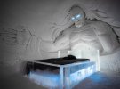 У приміщенні з льоду є крижаний трон, а барна стійка розташована під оком крижаного дракона.