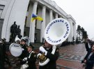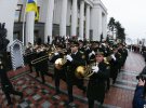 З нагоди Дня єднання біля Верховної Ради урочисто підняли прапор України, а оркестр виконав державний гімн.