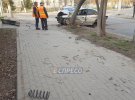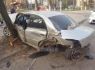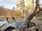 У Подільському районі Києва автомобіль КІА вилетів на тротуар, врізався в зупинку і збив два дерева.