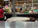 Жінка сидить відразу біля входу до павільйону. Своє ім'я не називає, але зізнається, що їй 65 років і й усі колеги та постійні покупці кличуть її "бабушкою".