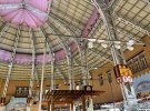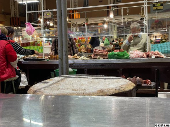 Після першого локдауну торік, на ринку закрилося чимало магазинів і лавок. Їхні електронні вивіски вимкнені, відключені від живлення холодильники для зберігання товарів. У великій головній залі нині працює біля 50 продавців. Сидять за ятками із м'ясом, рибою, ковбасами, фруктами, солодощами, овочами, молочними товарами.