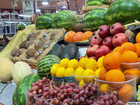 На ринку чимало свіжих фруктів та овочів. Багато кабачків по 50 грн за кілограм і помідорів. За них просять від 30 грн. Є інжир, авокадо, кавуни, дині, полуниця, лохина та малина.