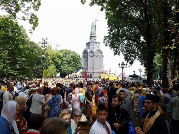 У центрі Києва пройшла хресна хода парафіян Української православної церкви Київського патріархату. У заході взяли участь 15 тис. людей, серед них були учасники АТО та військові капелани.