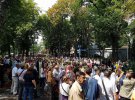 Як повідомив кореспондент "Укрінформу", колона рухалася вул. Володимирською, де був перекритий рух. Людей супроводжували автомобіль патрульної поліції і велопатрулі. Вздовж вулиці також стояли поліцейські.