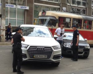 На вулиці Дмитрівська, 80, у центрі столиці, водій позашляховика Audi Q-7 припаркував автомобіль впритул до трамвайних колій. Внаслідок цього утворилася пробка з громадського транспорту на 40 хвилин.