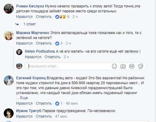 У Києві в Дарницькому районі жителі провчили героя парковки, який залишив свій автомобіль біля дитячого майданчика.