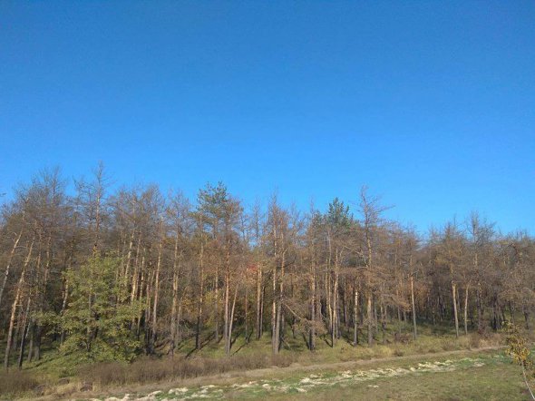 Пошкоджені сосни виявили співробітники лісової охорони Дарницького лісопаркового господарства Близько 400 дерев, які розташовані у кварталі між вулицею Кіото та Броварським проспектом, засохли одночасно, розповів 23 жовтня в ефірі Громадського радіо Ігор Кирикевич, еколог та представник організації "Центр моніторингу влади".