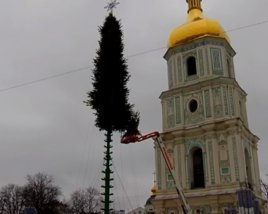 На столичній Софійській площі встановлюють новорічну ялинку.