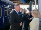 Діставався до Києва він, як і всі іноземні гості, потягом. Зустріла на пероні румунського лідера віцепрем'єр-міністерка з європейської та євроатлантичної інтеграції Ольга Стефанішина.