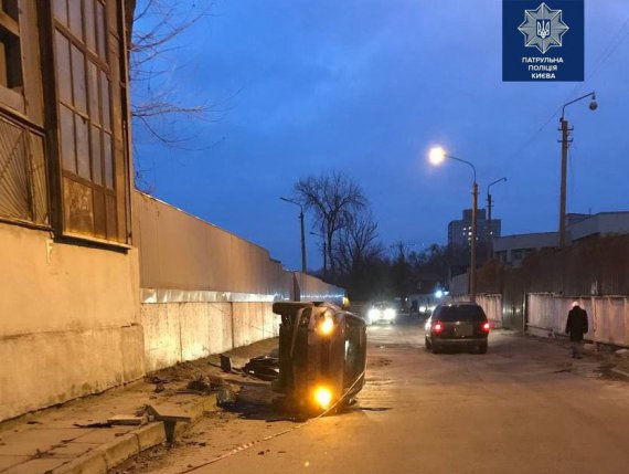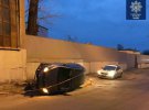 У Києві на вул. Аеродромній сталась ДТП за участі 2 автомобілів Volkswagen. Одна з автівок перекинулась на бік.