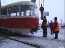 Рух електротранспорту було зупинено на маршруті. Щоб повернути в робоче положення багатотонний трамвай і відновити електроживлення, до місця аварії прибула спецтехніка.