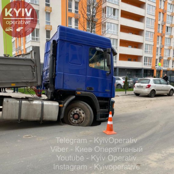 Сьогодні, 9 листопада, у столиці, поблизу ЖК "Нивки Парк", вантажівка провалилася в яму.