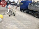 "На просп. Перемоги, 67 вантажівка провалилася в яму, яка утворилася через прорив опалення", - зазначили автори допису.