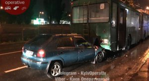 У Києві на проспекті Степана Бандери Opel протаранив тролейбус.