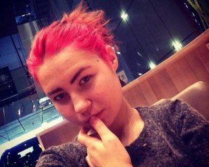 Дівчині 16-17 років, зріст - 161 см, худорлявої статури, рожеве волосся, зачіска "каре", на носі справа пірсинг, на зап'ясті є татуювання у вигляді серця, пробитого стрілою. Була одягнена в чорну болоньєву куртку, джинси синього кольору, сірий шарф, чорні кросівки.