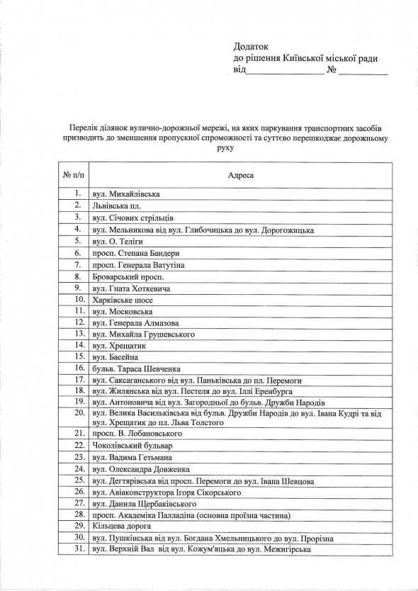 У проекті рішення перерахували назви 61 вулиці, де планується вести заборону на парковку. Зараз цю постанову розглядає відповідна комісія ради.