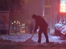 Столицю України продовжує засипати снігом, який розпочався ще з ночі.